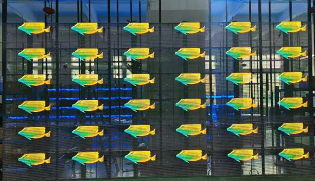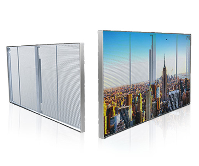 通透率可达95%,透光,透风,不影响采光和视线;无钢结构,重量轻,安装快捷方便,插电即用,显示屏模块化设计,易于安装固定在支架上,标准尺寸的模组可以快速被拼装成大屏幕,所有电源和接收卡都隐藏在模组里,电源连接起来更容易。