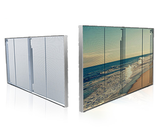 通透率可达95%,透光,透风,不影响采光和视线;无钢结构,重量轻,安装快捷方便,插电即用,显示屏模块化设计,易于安装固定在支架上,标准尺寸的模组可以快速被拼装成大屏幕,所有电源和接收卡都隐藏在模组里,电源连接起来更容易。