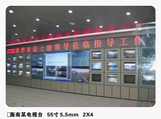 湖南某单位采用彩晨科技55寸 拼缝5.5mm 2x4液晶拼接屏,两边总安装液晶监视器24台