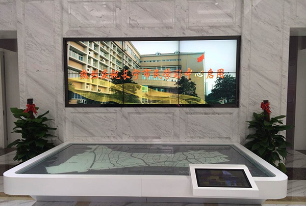 上海长宁市民学习中心采用彩晨科技46寸双边物理拼缝6.7mm2X3液晶拼接屏