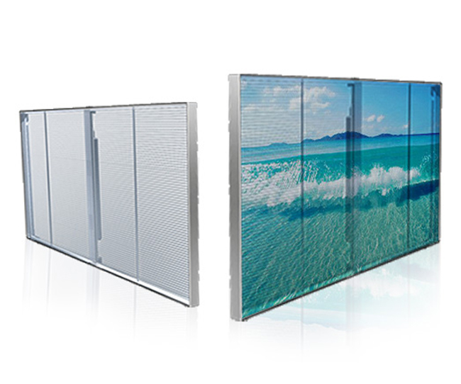 通透率可达95%,透光,透风,不影响采光和视线;无钢结构,重量轻,安装快捷方便,插电即用,显示屏模块化设计,易于安装固定在支架上,标准尺寸的模组可以快速被拼装成大屏幕,所有电源和接收卡都隐藏在模组里,电源连接起来更容易。
